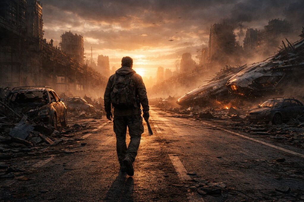 Chi è davvero un protagonista sopravvissuto alla guerra aliena? Non un eroe, ma qualcuno che continua a vivere quando tutto è crollato. In questo frammento entriamo nella mente di John, un uomo rimasto senza passato in un mondo che non riconosce più.